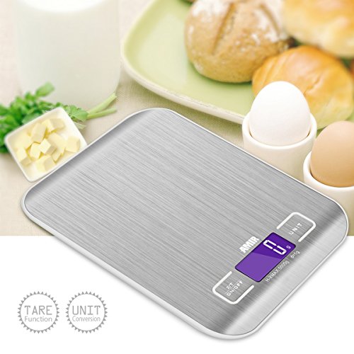 - Große Kapazität von bis zu 5 kg mit präziser 1g Teilung, diese Küchenwaage ist sehr nützlich für die festen und flüssigen Messung.