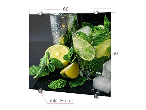Graz Design® Spritzschutz aus Sicherheitsglas Abdeckwand Küche Cocktail Caipirinha Limette (60x60cm)