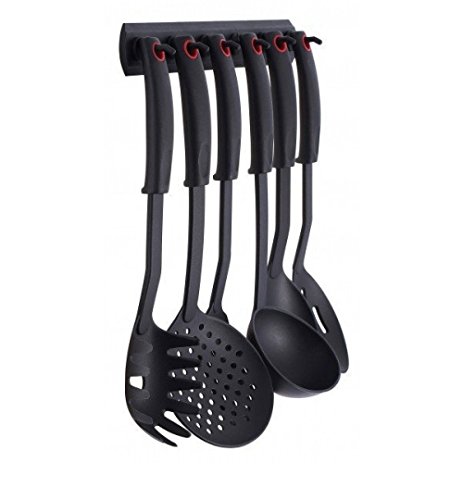 7-teiliger Küchenhelfer mit Hängeleiste mit Nylon-Kochutensilien: Schaufel-Suppe - Spaghetti-Lift - Schaumstoff-Schaufel - Löffelbraten - - Löffelschaum