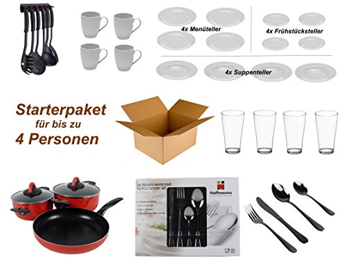[ad_1] Exklusives Starter Kit für bis zu 4 Personen mit vielen hochwertigen Artikeln. Alle Artikel sind wunderschön in einer großen Schachtel verpackt. Dieser Bausatz eignet sich ideal als kleines Geschenk oder um Ihr Zuhause zu erweitern: eine Schüssel mit 5 Stück und eine Pfanne mit einer Schale von 16 cm und 20 cm (mit einem Glasdeckel) sowie einer Schaufel von ø 24 cm der Brunhill-Stilkette. Geeignet für Elektro- und Gasherde und Glasoberflächen von Keramik- und Halogenplatten • Ein Satz von 7-teiligen Küchenutensilien mit Aufhängeplatte mit Nylon-Kochutensilien: Schüssel - Spaghetti-Spray - Schaumstoff-Schaufel - Löffel - Löffel Löffel Löffel Schaum • 4 Flaschen Trinkwasser Das Design ist zeitlos und klassisch, hochwertige Marke Richter Erzberg, bestehend aus 4 Tafeln (24,5 cm), tiefe Platte (21,5 cm), Frühstück / Dessertteller (19cm), Kaffeetassen (250ml). Geschirrspüler und Mikrowelle. • 16 Stück Qualitätsmarke "Hoffmanns", spülmaschinenfest. Paket enthalten 4x Messer, Gabel, Löffel, Kaffeelöffel 16 Stk. Set Gütezeichen "Hoffmanns", Spülmaschine geeignet. Die Platte besteht aus 4 Stück jede flache Platte (24,5 cm), tiefe Platte (21,5 cm), Frühstück / Dessert Schüssel, das Set enthält 4x Messer, Gabel, Löffel, Kaffee Löffel 19 cm), Kaffeetassen (250 ml) Material: Porzellan. Set aus 4 Stück mit zeitlosem und klassischem Design, das die Größe von ca. 350 ml füllt