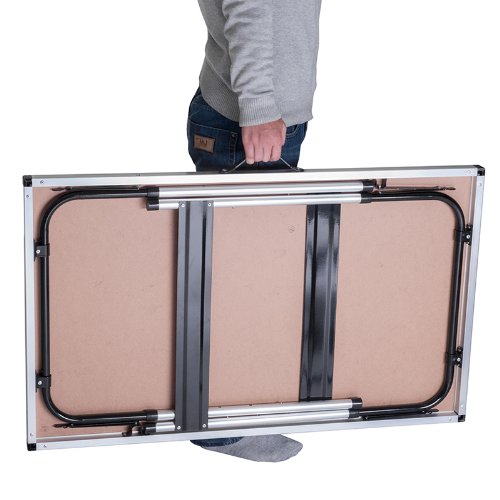 Klapptisch hat wetterfesten Tisch und stabile Aluminiumstruktur, starke Plastikwinkel. Falten und Falten, ideal für Camping, Garten und Balkon.